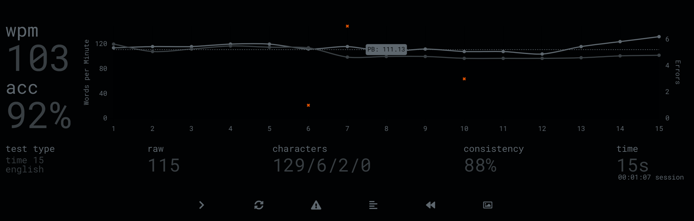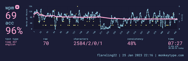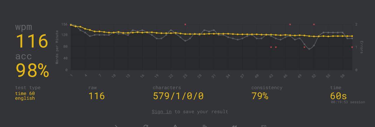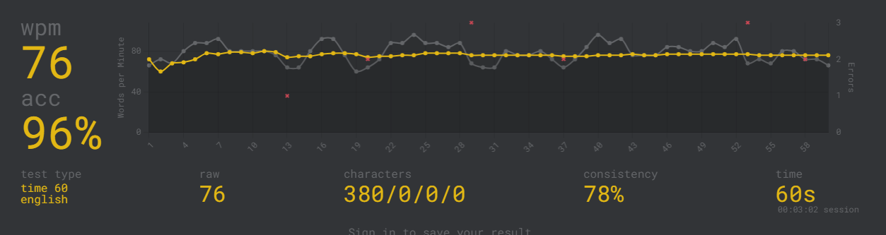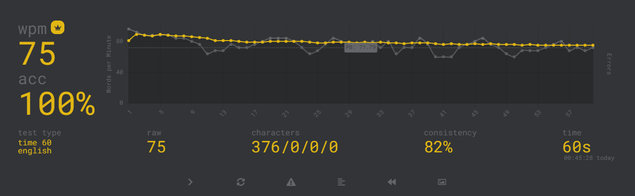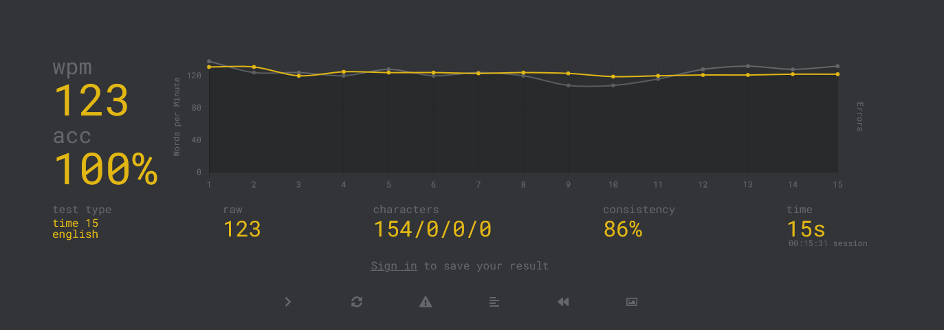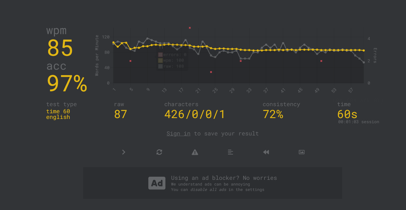 179bpm - 30 seconds - 48 WPM (Accuracy - 96%)