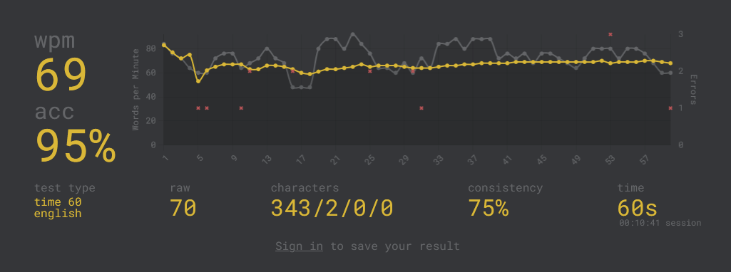 13. a1l2d3r4e5d6 - 69 WPM (Accuracy - 95%)