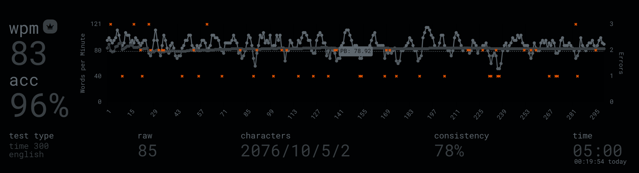 16. 179bpm - 54 WPM (Accuracy - 96%)