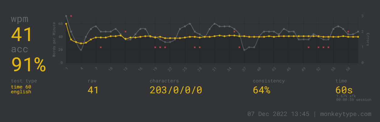 Nikolai - 30 seconds - 91 WPM (Accuracy - 97%)