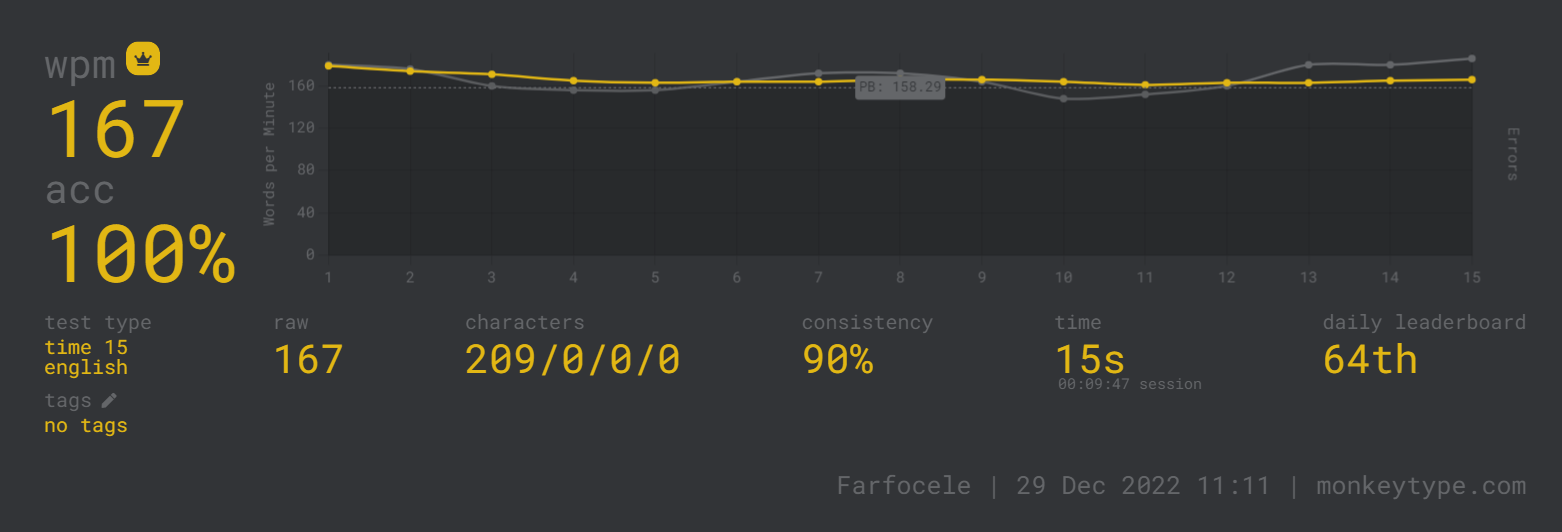 2. Farfocele - 167 WPM (Accuracy - 100%)