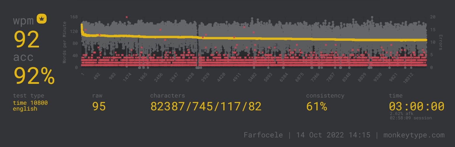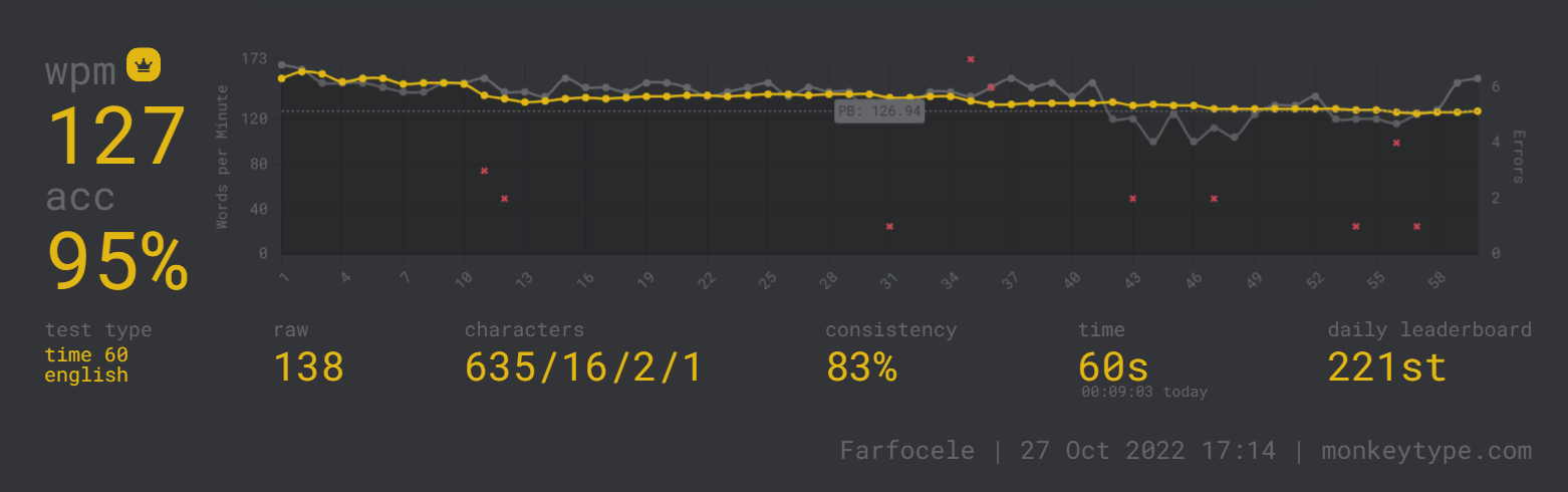 3. Farfocele - 127 WPM (Accuracy - 95%)