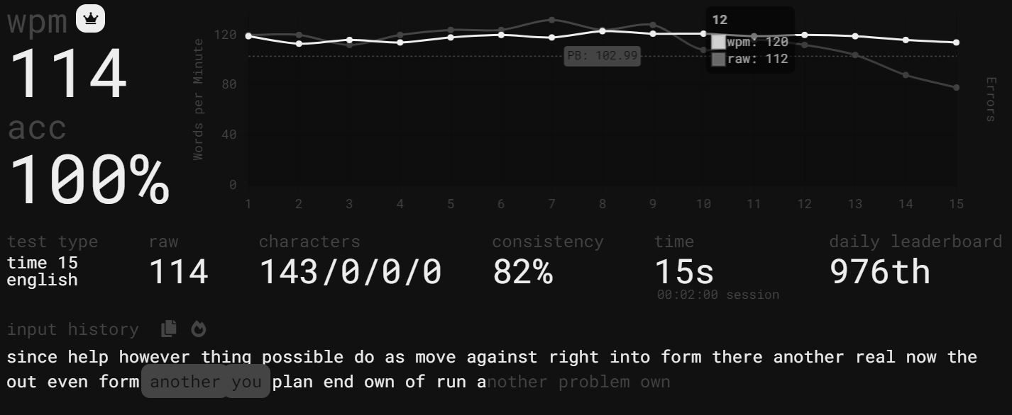 5. Stomiks - 114 WPM (Accuracy - 100%)