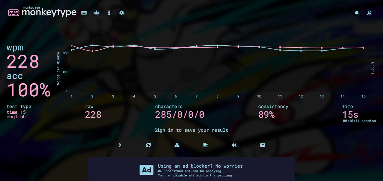 1. Moneyeo - 228 WPM (Accuracy - 100%)| woah what a god