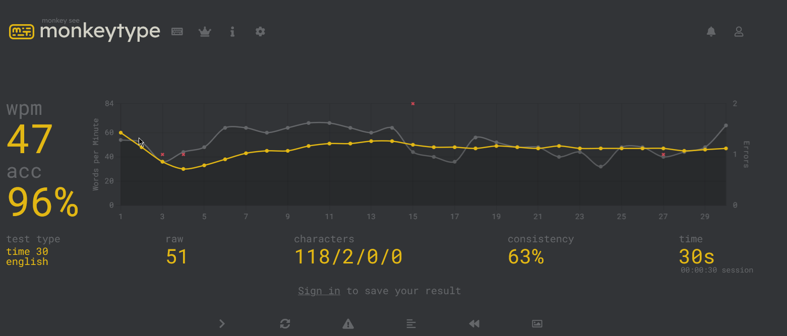 Jangsoodlor - 30 seconds - 47 WPM (Accuracy - 96%)