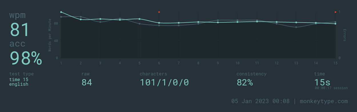 9. chnjnz - 81 WPM (Accuracy - 98%)