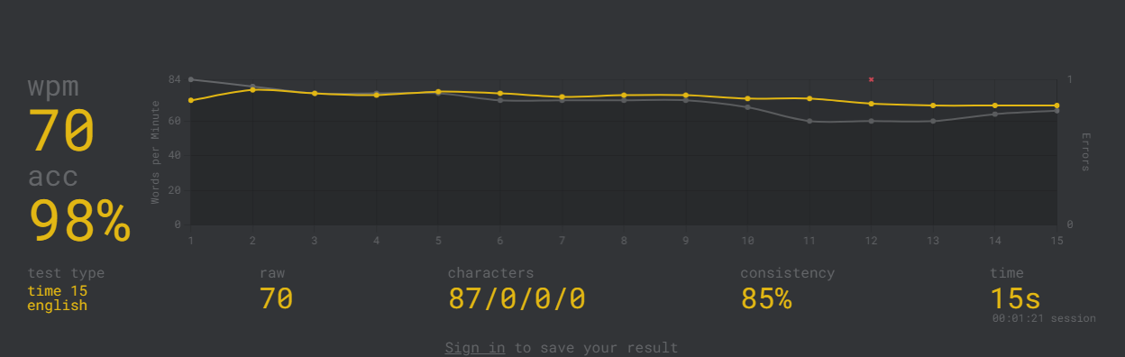 13. Kinmiri - 70 WPM (Accuracy - 98%)
