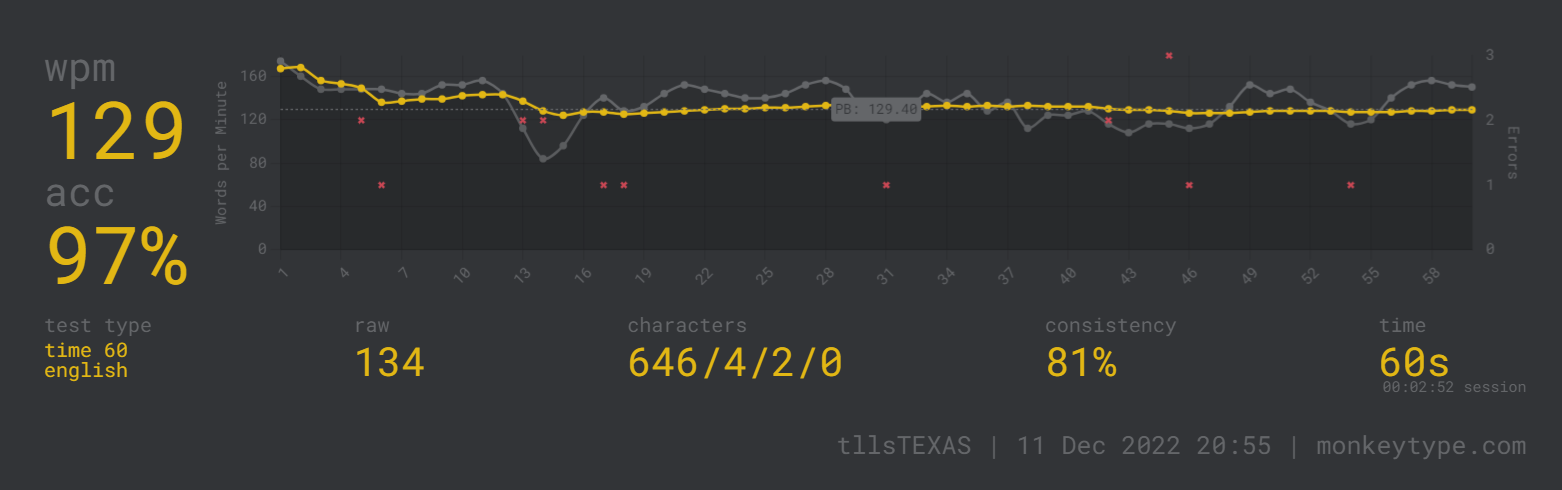 2. tllsTEXAS - 129 WPM (Accuracy - 97%)