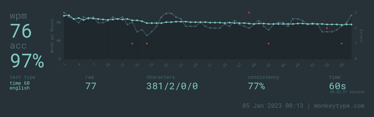 9. chnjnz - 76 WPM (Accuracy - 97%)
